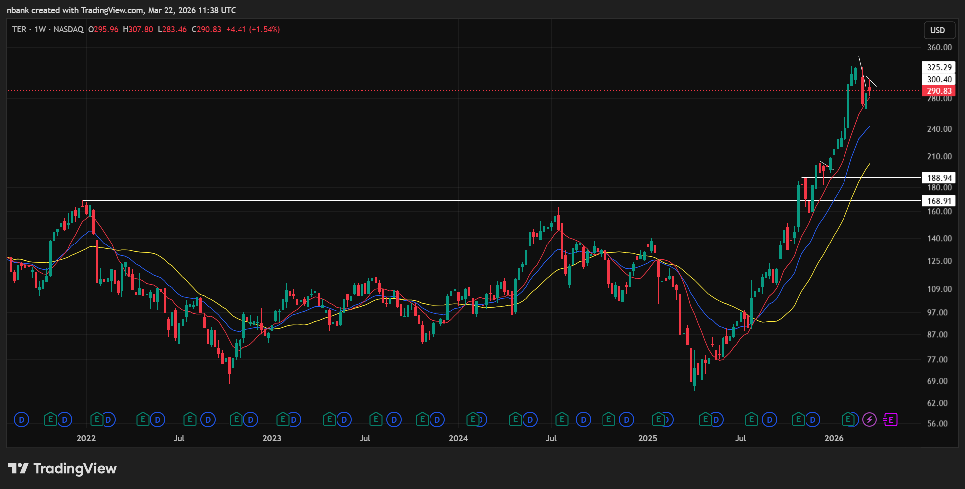 Weekly you can see the big run off the lows out of this 4 year base. See if it can continue to build out a base here above 10WMA