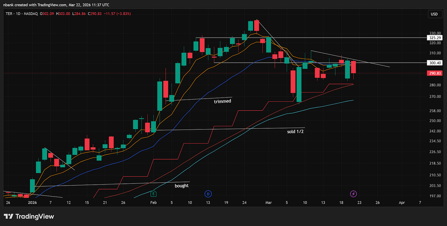 Took add off at breakeven. See how it can hold up if the market pulls back further. Still think it looks great for now and any constructive consolidation above 20ema/10WMA would look good
