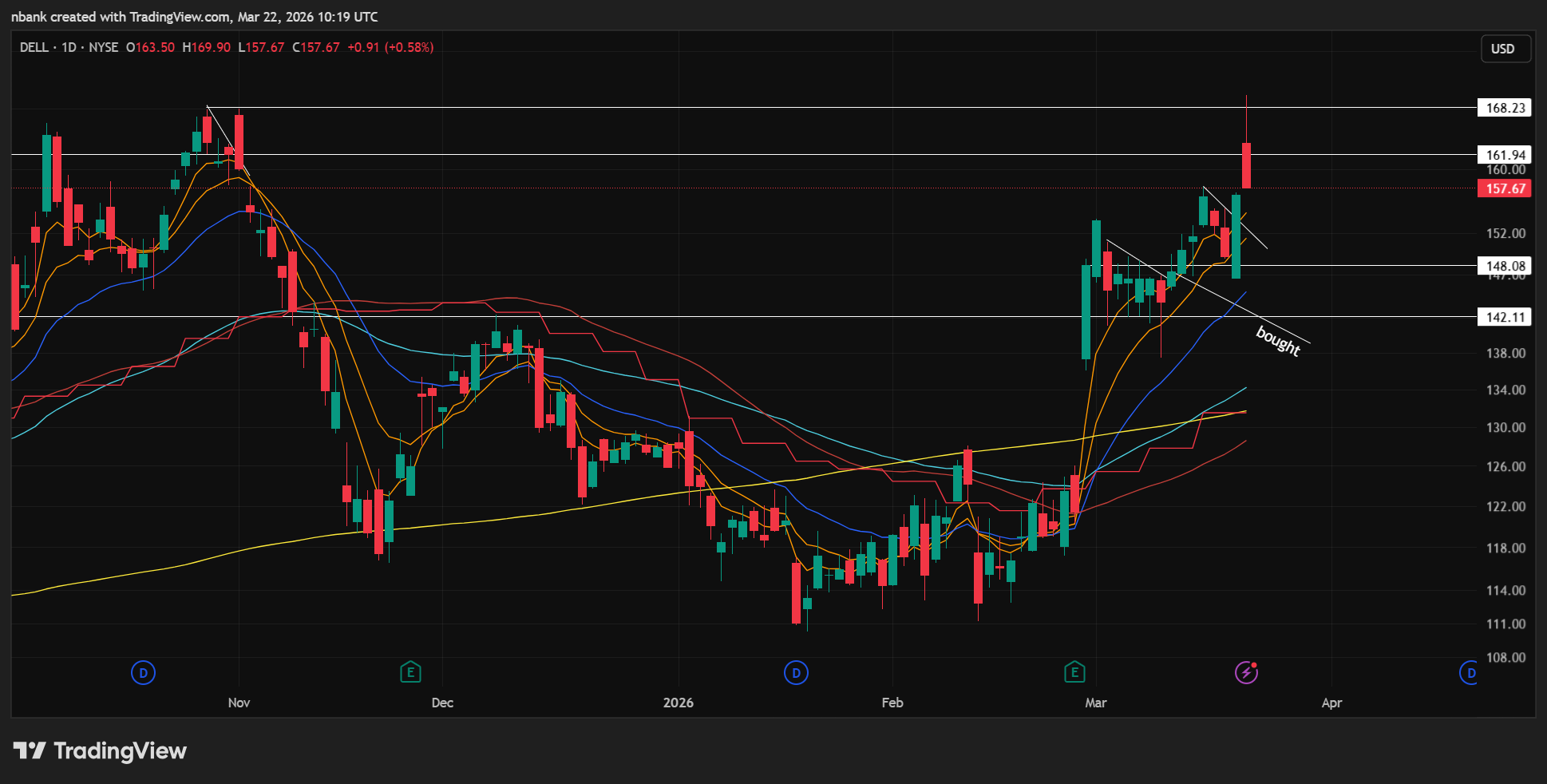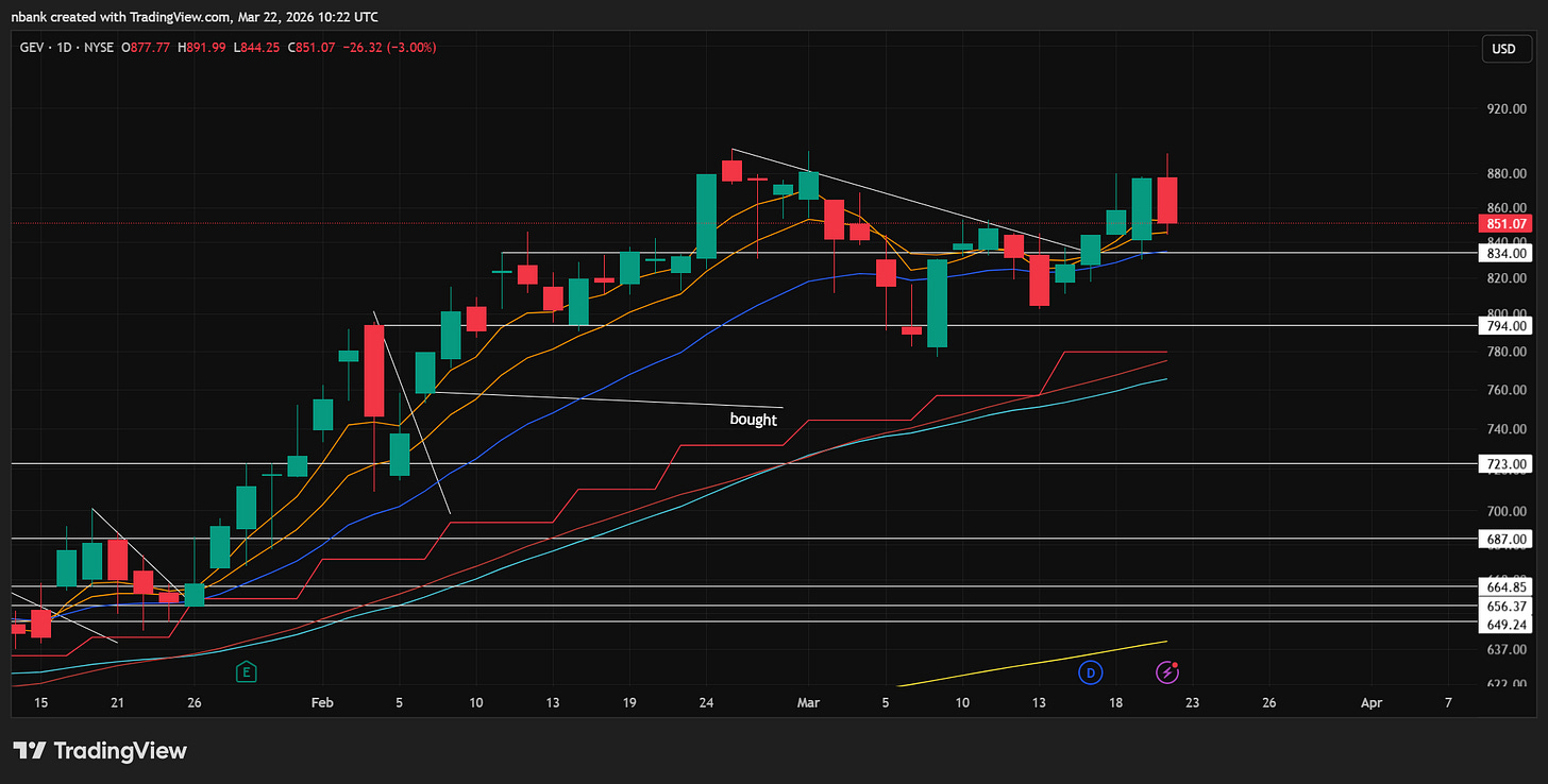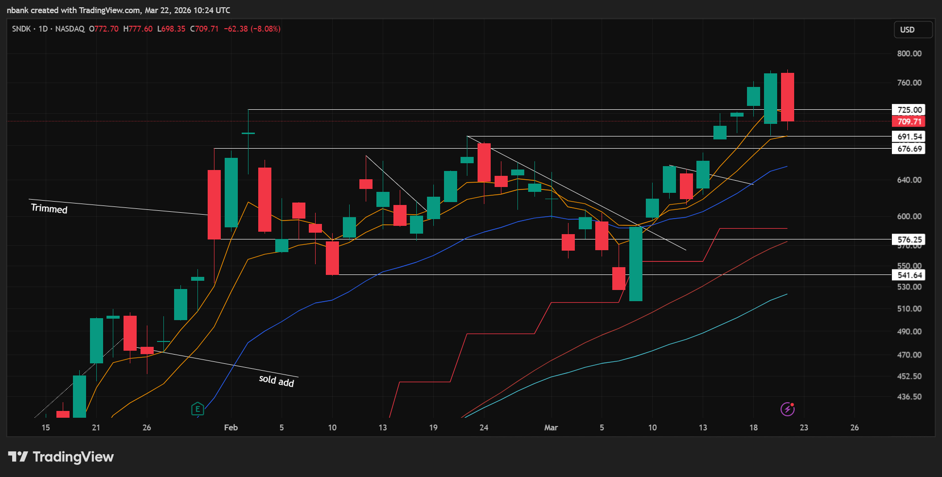 Reversing with the market but almost closed above all MA’s. Took my add off for a small win with the potential gap down risk Monday and to take some risk off the table.