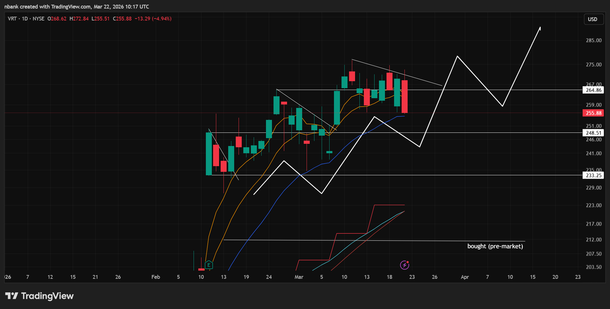 Took my add off this at breakeven. Still doing great to hold above 20ema for now. Could be working on a potential ascending base pattern with a aeries of higher highs and higher lows. See if it can hold up if market weakness further