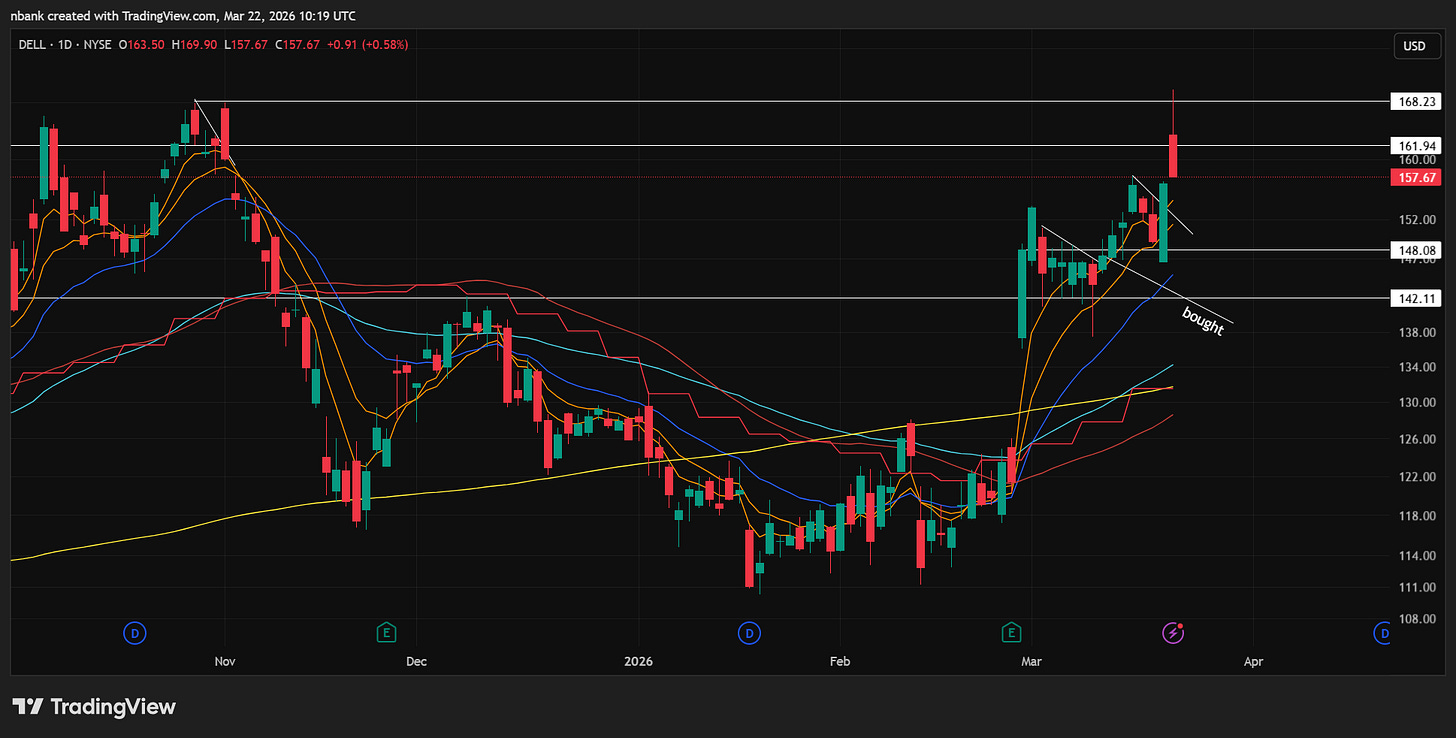 Gapped up on some negative SMCI news that they will benefit from. Looked strong initially but eventually succumbed to market weakness.